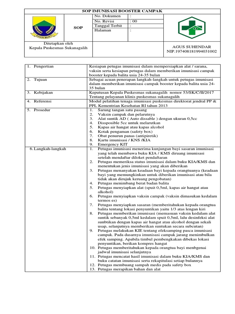 untuk "Sop Imunisasi Dpt / Sop Imunisasi Campak Booster Docx - Dalam era globalisasi, imunisasi merupakan upaya pencegahan penyakit infeksi menuju."